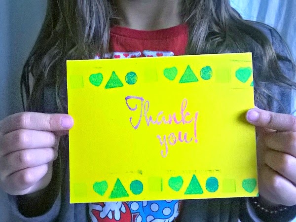Here is her completed thank you card. It's already in the backpack on the way to school today.